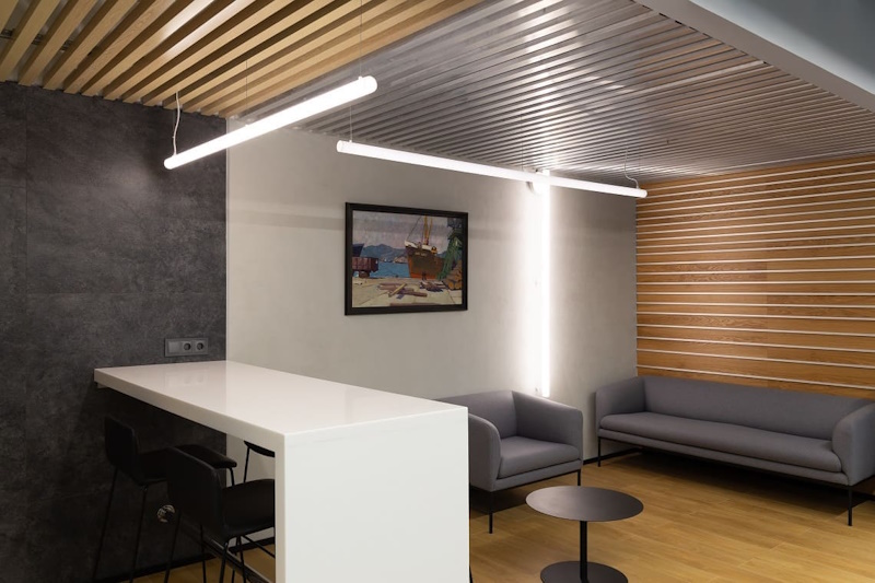 Световые линии на базе алюминиевых реек — удобный инструмент зонирования. Они позволяют разделить пространство без перегородок и визуального шума.